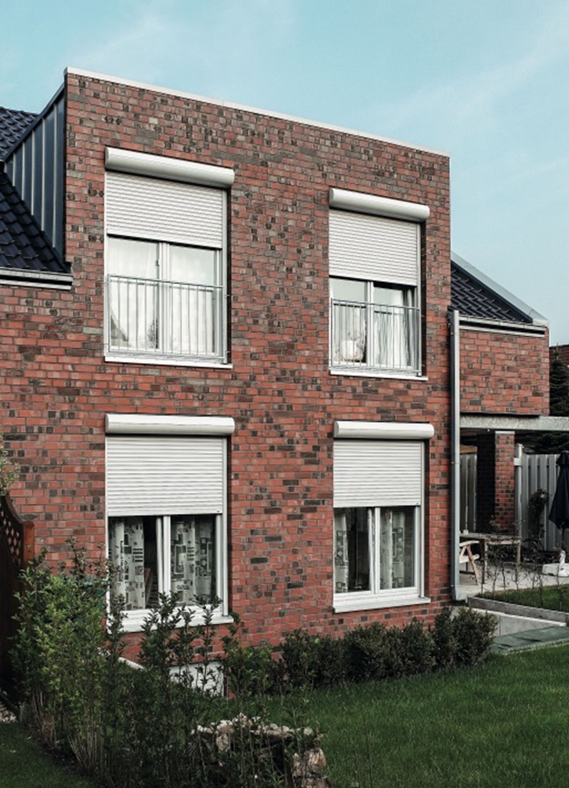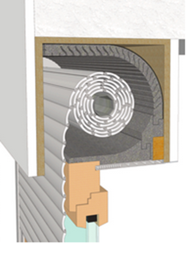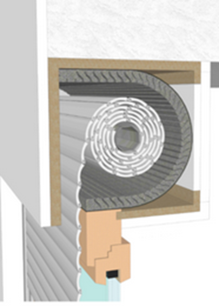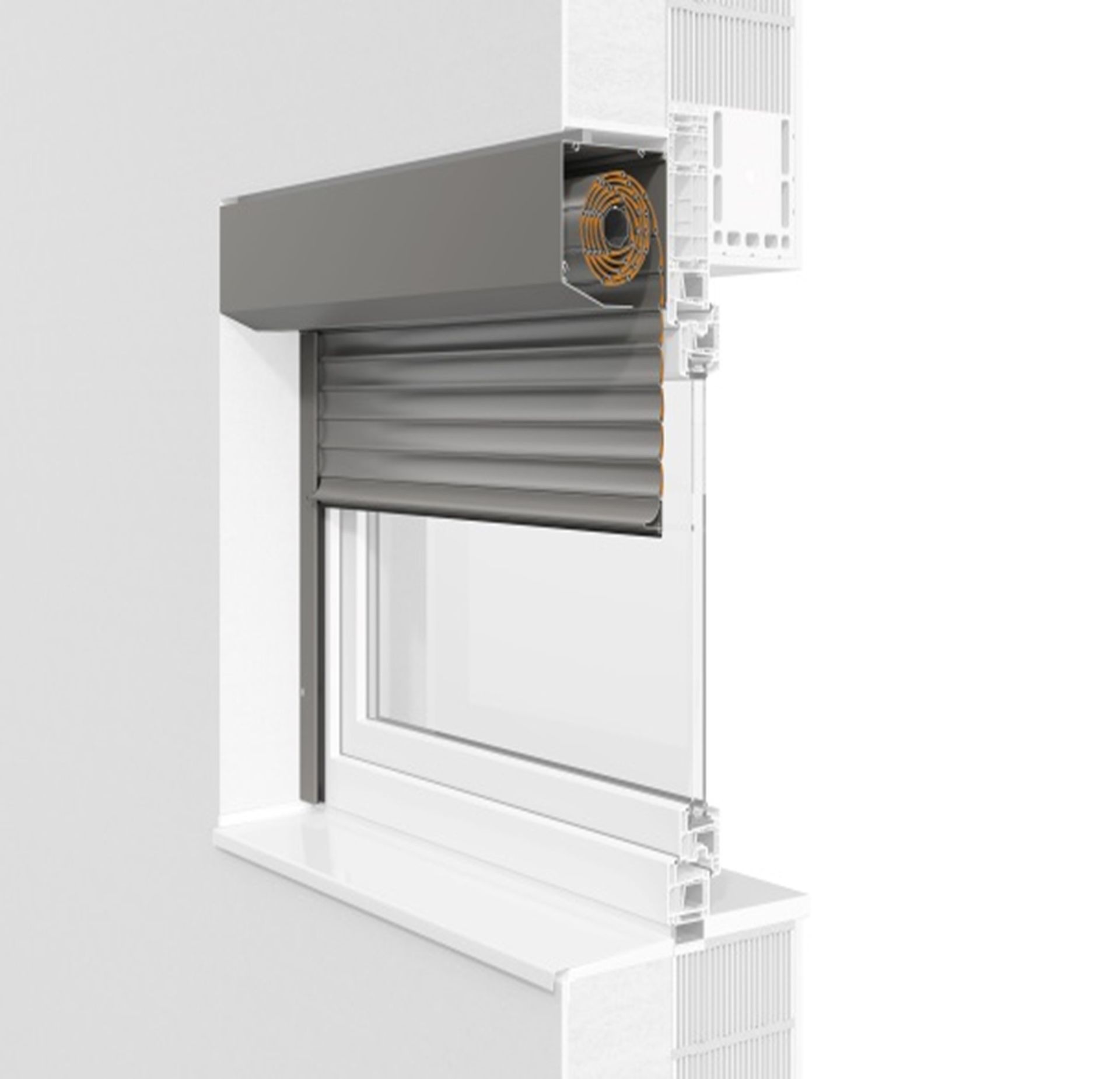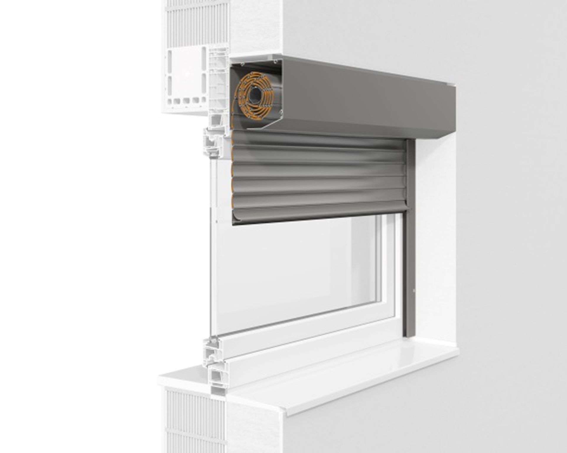 Bei diesem Rollladensystem bestimmt die Frontblende die Optik. Es wird vor das Fenster in die Laibung gesetzt und schliesst flächenbündig mit der Hausfassade ab. Bei besonderen bauseitigen Anforderungen kann es jedoch auch auf der Fassade platziert werden.